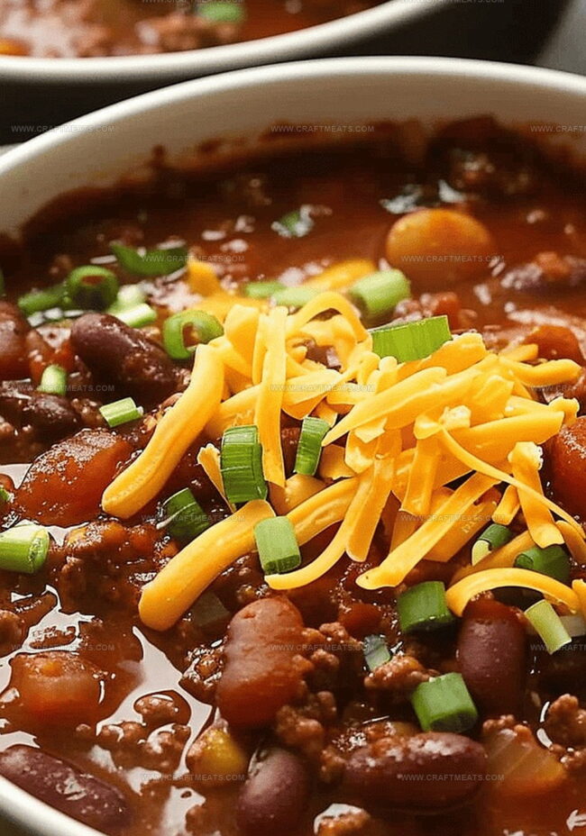 - Present the steaming chili in substantial serving bowls, crowning each portion with a lavish sprinkle of sharp cheddar cheese, a cascade of crunchy Fritos, or a verdant garnish of thinly sliced green onions. Savor this hearty, soul-warming creation.