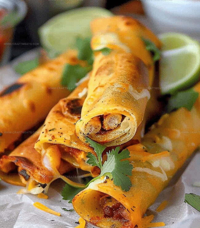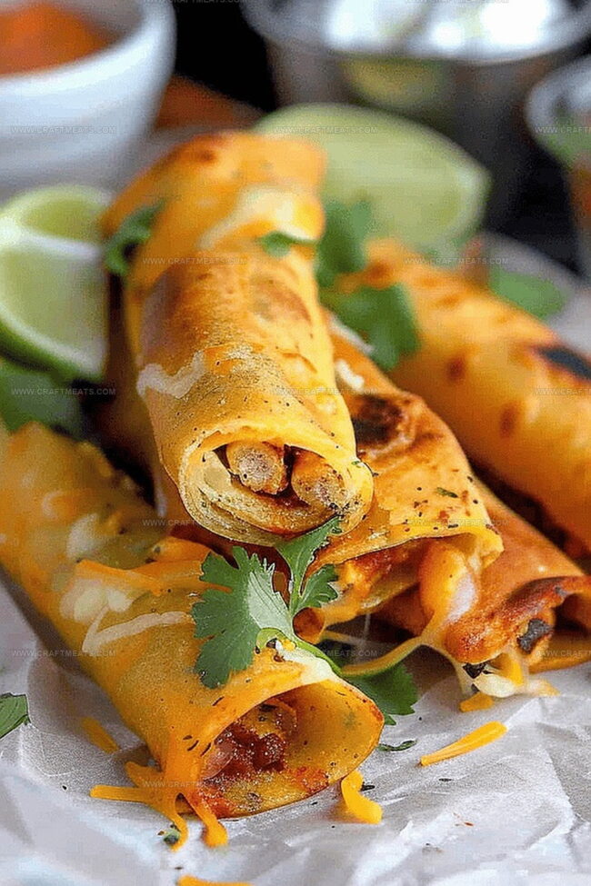These rolled tortilla delights combine savory shredded meat with melty, spicy cheese for an irresistible handheld treat.