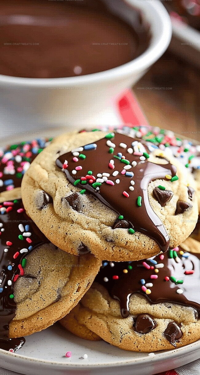 While chocolate is still wet, shower cookies with decorative sprinkles. Let them rest at room temperature for about 2 hours until chocolate sets completely.