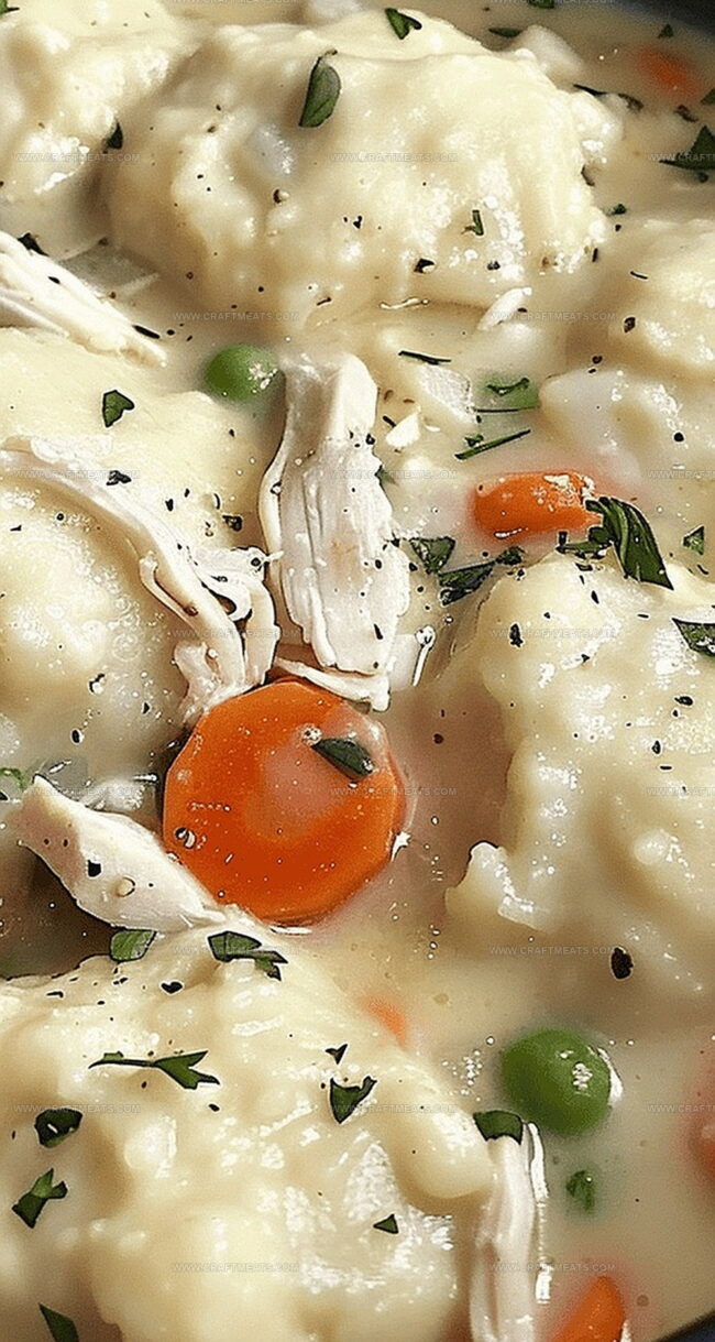 - Perfectly seasoned chicken and tender vegetables create a rich, flavorful base that serves as the foundation for fluffy, homemade dumplings.