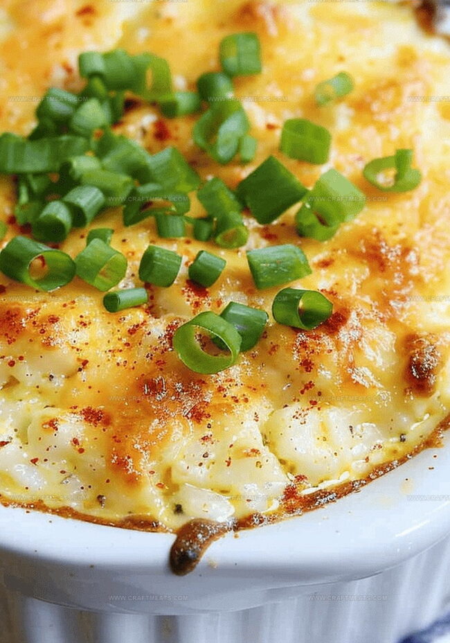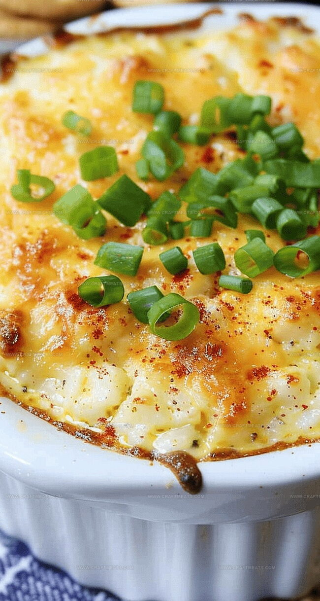 Vegetarian Comfort: Swap crab meat with roasted cauliflower or artichoke hearts, using a blend of gruyere and parmesan cheeses for a rich, plant-based alternative that maintains the creamy texture and comforting essence of the original recipe.