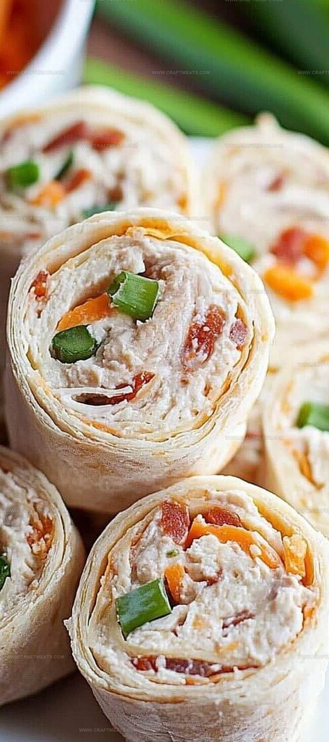 - Artfully arrange the pinwheels on a serving platter, optionally garnishing with a sprinkle of fresh green onions or aromatic herbs to elevate the presentation.