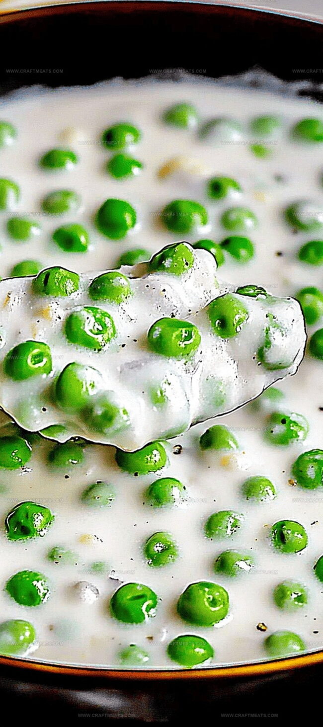 - Transfer the creamed peas to a serving dish, adorning with a sprinkle of freshly cracked pepper, a delicate pat of butter, and a scattering of finely chopped chives or dill for a burst of herbal freshness. Present immediately while the sauce remains gloriously warm and inviting.