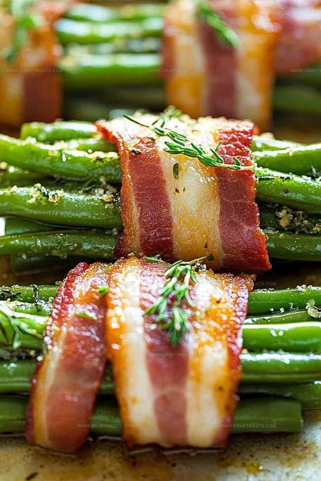 Generously brush each bundle with the flavor-packed glaze. Slide the baking sheet into a preheated oven and let the magic happen. Bake until the bacon turns gloriously crisp and the green beans become perfectly tender.