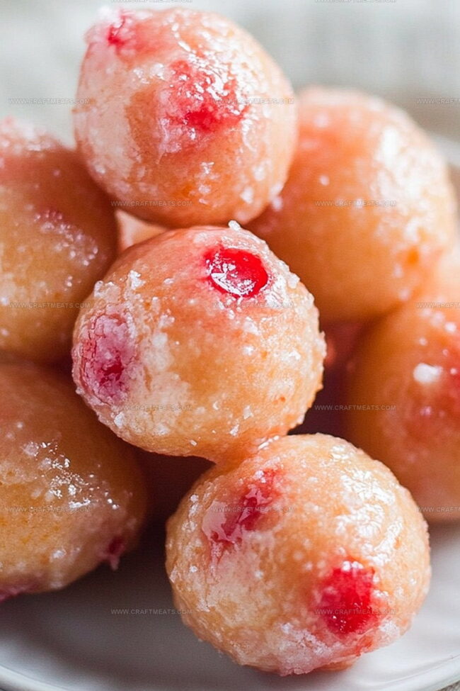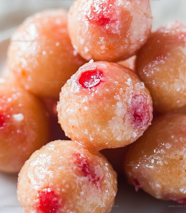Sweet and fluffy cherry doughnut holes burst with delightful flavor in this irresistible treat.