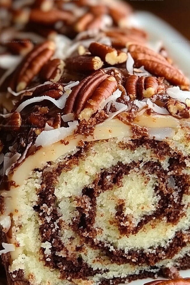 Quick German Chocolate Coconut Pecan Roll Cake Recipe: Sweet Swirls!