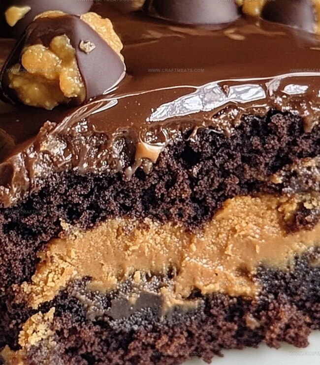 Layers of moist cake and crumbled peanut butter cups create an irresistible texture that melts in your mouth.
