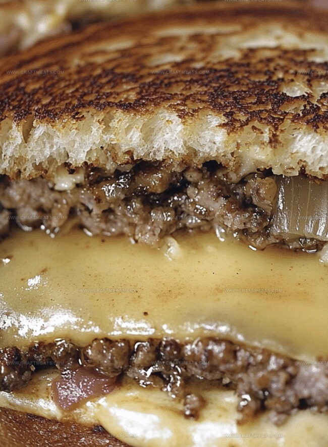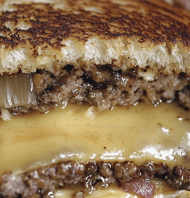 - Assemble Melts: Spread secret sauce on bread slices. Layer each sandwich with cheese, cooked patty, caramelized onions, and another cheese slice. Top with the remaining sauce-coated bread.