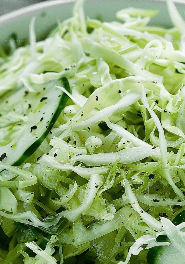- Crisp, refreshing salad bursting with vibrant green vegetables and a tangy, light dressing that brings out the natural crunch of cabbage and cucumbers.