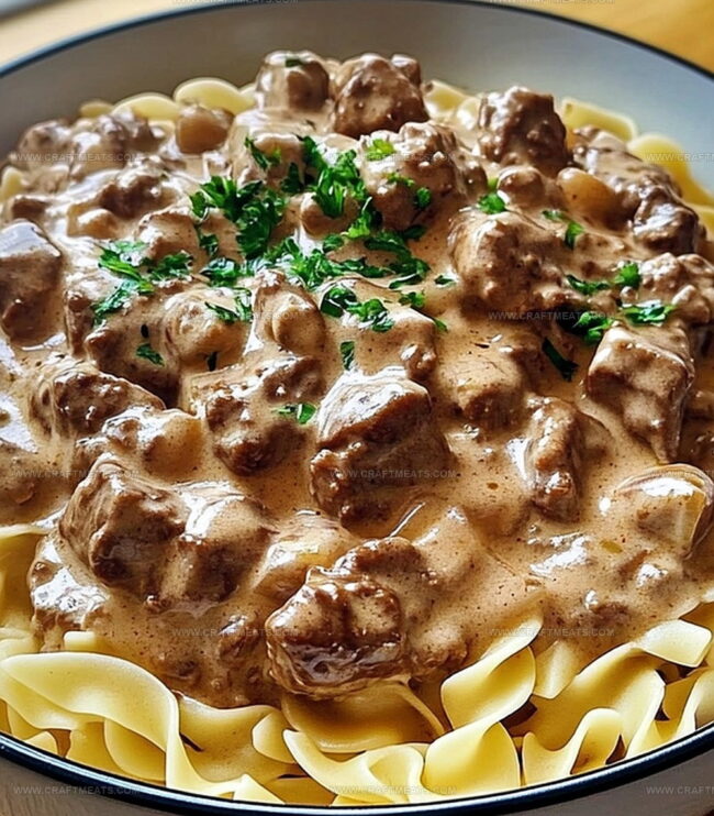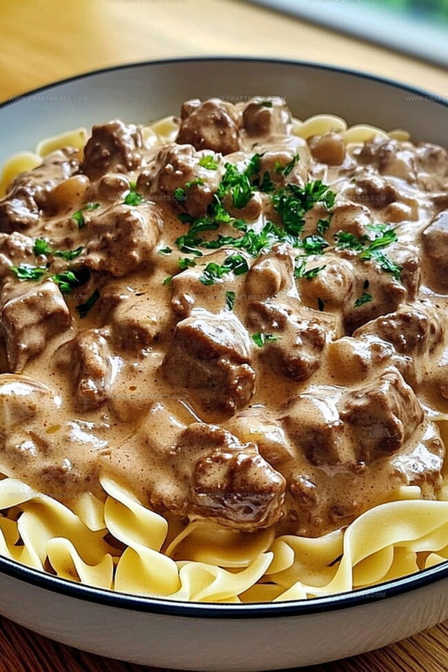 - Final Presentation: Ladle the stroganoff over prepared noodles. Garnish with freshly chopped parsley for a bright, fresh finish to this classic comfort dish.