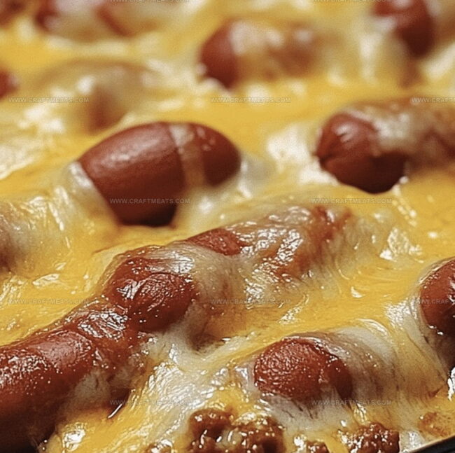 Hearty hot dogs nestled in rich, spicy chili create a crowd-pleasing meal perfect for casual dinners.