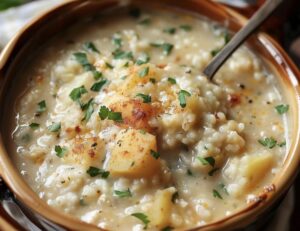 Crispy bacon bits and tender chunks of potato dance together in a velvety broth that promises pure satisfaction.