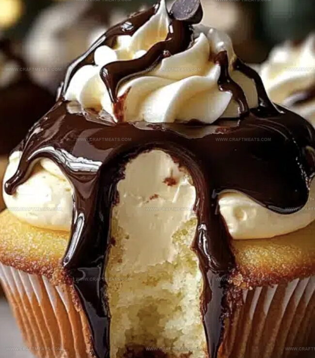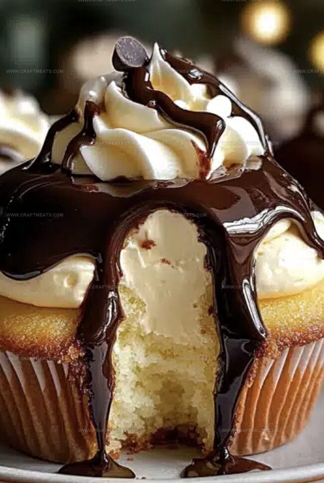 - Final Presentation: Drape each cupcake with chocolate ganache, allowing it to flow elegantly down the sides. Let set for 10 minutes before serving these decadent Boston Cream Pie Cupcakes.