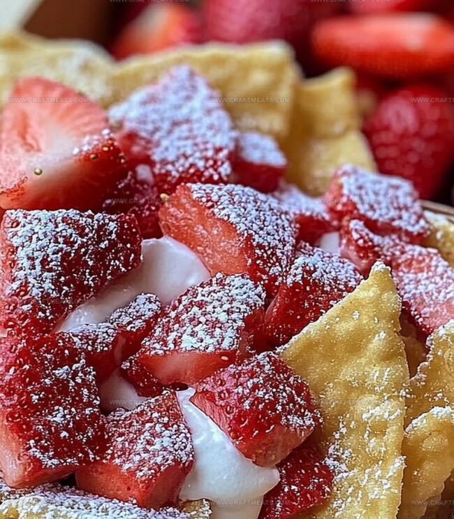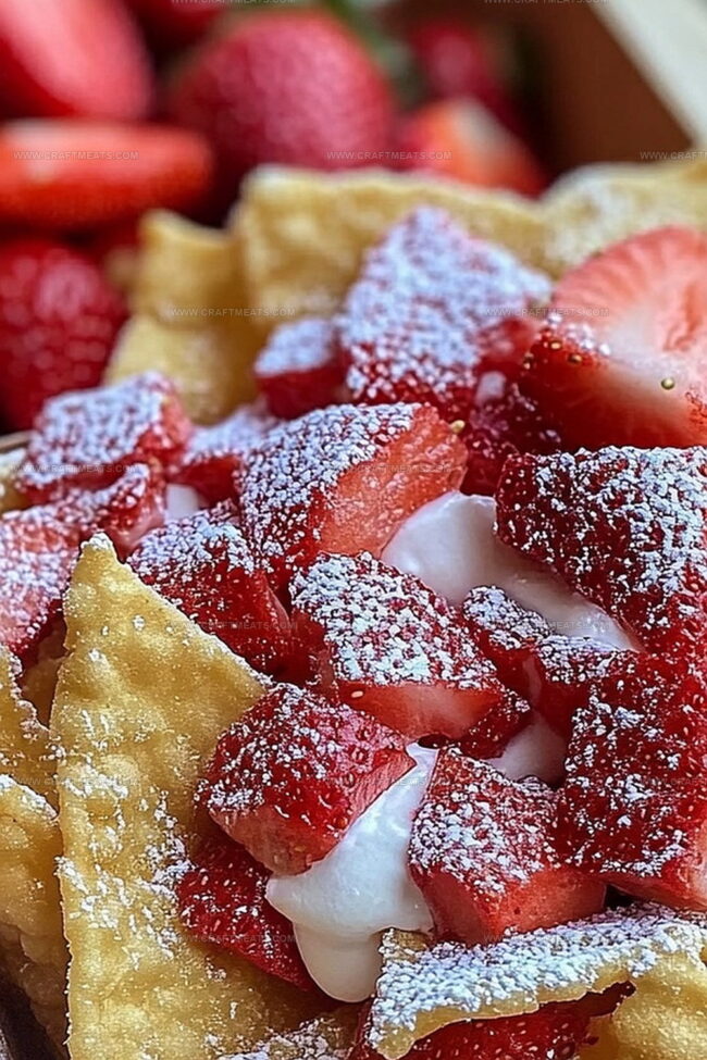 - Final Garnishing: Distribute macerated strawberries over filled chips. Enhance with optional chocolate drizzle, dollops of whipped cream, or sprinkled graham cracker crumbs for added texture and visual complexity.