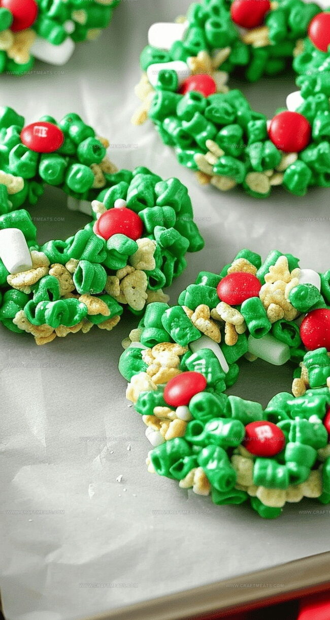 Sweet holiday cornflake wreaths sparkle with festive charm and whimsical nostalgia.