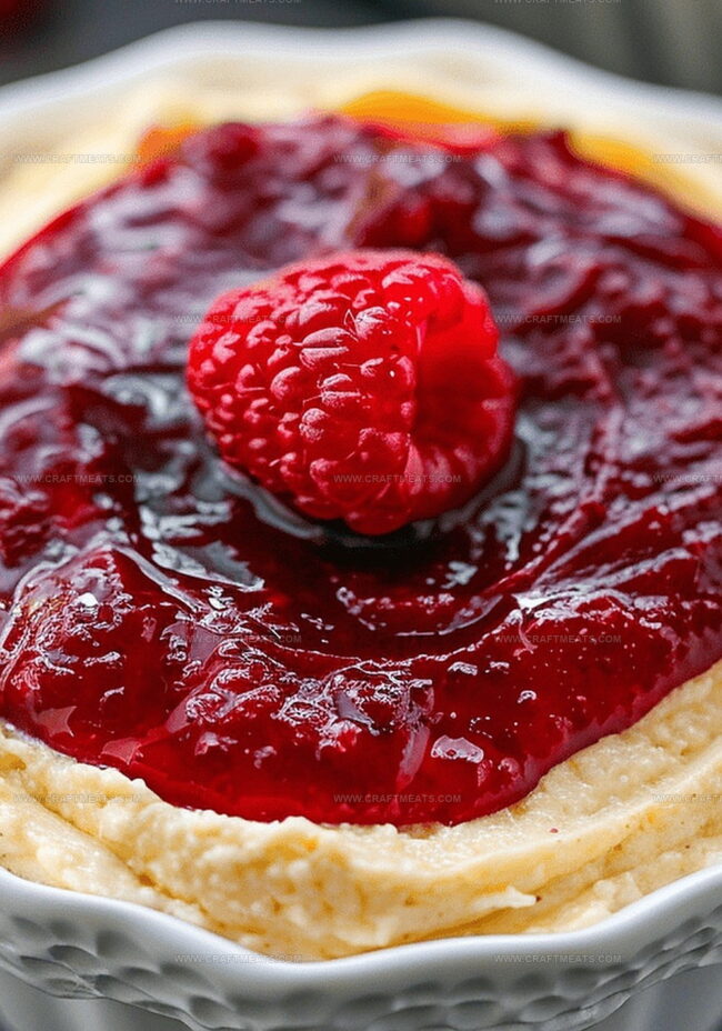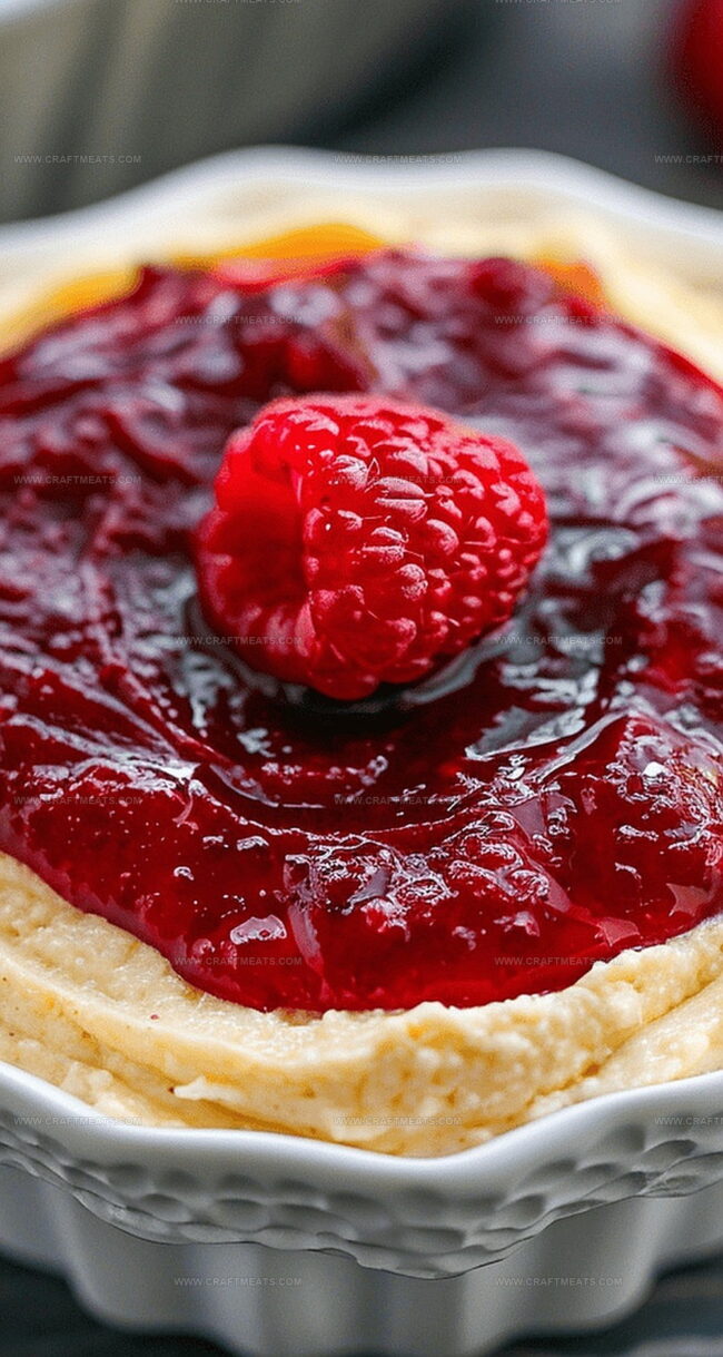 - Artfully cascade the crimson berry sauce across the whipped cottage cheese surface, allowing gentle swirling for visual appeal and flavor integration.