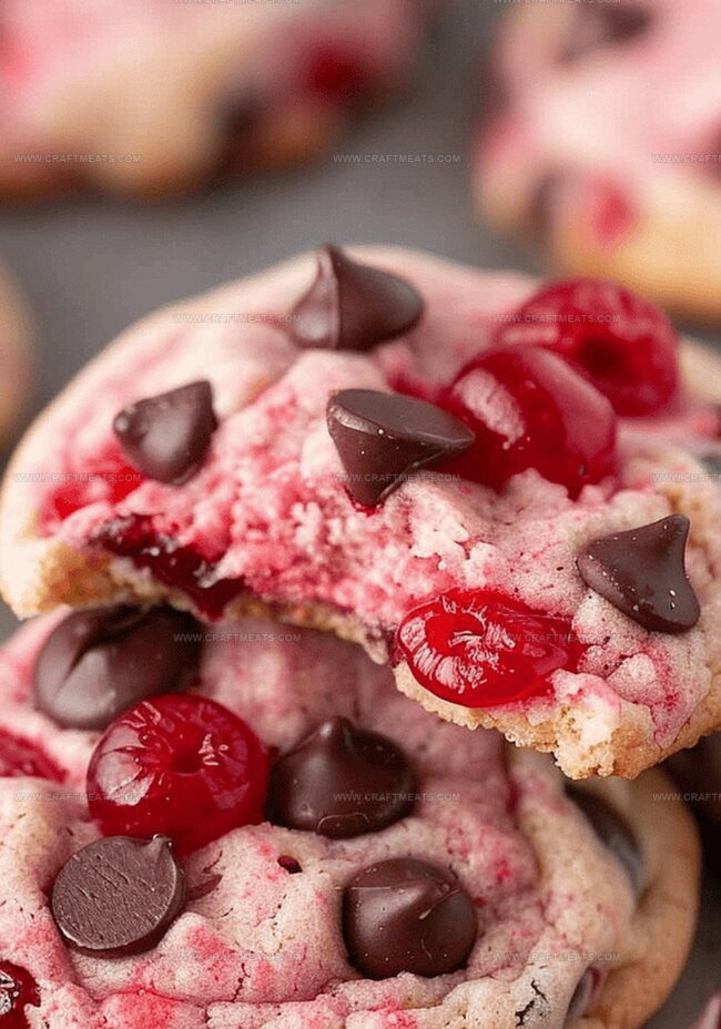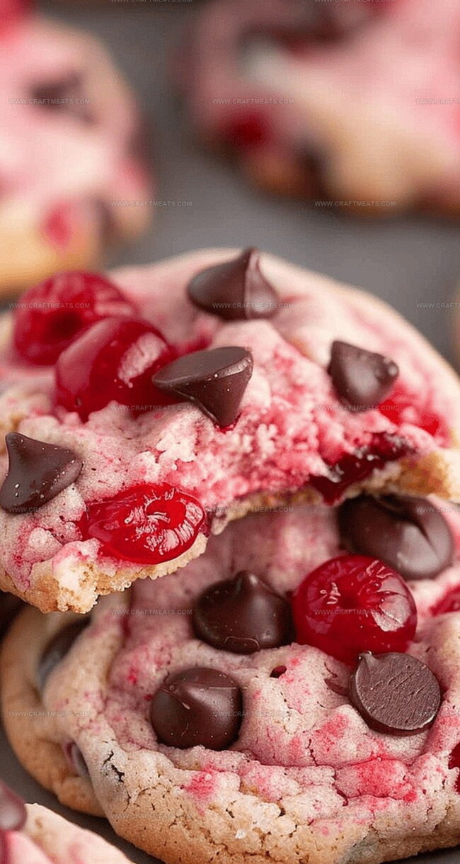 - Using a cookie scoop, form uniform dough balls, strategically embedding additional chocolate chips and cherry pieces on the exterior for visual appeal.