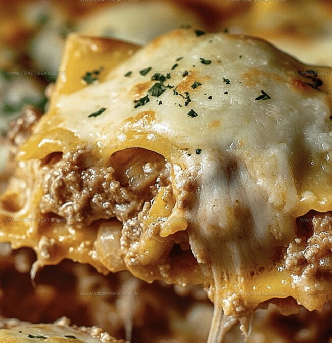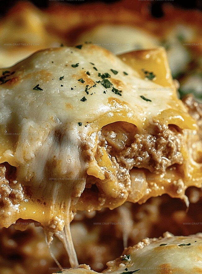 In a large skillet, brown the ground beef with diced onions until they’re perfectly caramelized. Toss in some garlic for an extra flavor punch. Pour in marinara sauce and let it simmer, creating a rich, aromatic base that’ll make mouths water.