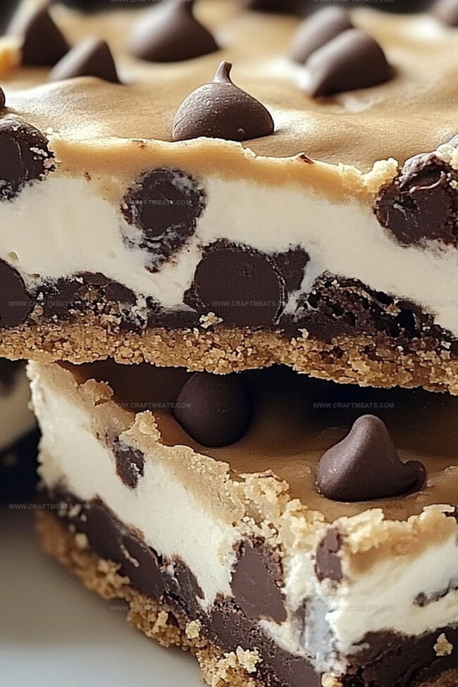 Delectable chocolate chip cookie dough bars blend creamy sweetness with nostalgic comfort. Cookie lovers savor rich layers of eggless dough and smooth chocolate, creating an irresistible no-bake dessert you cannot resist.