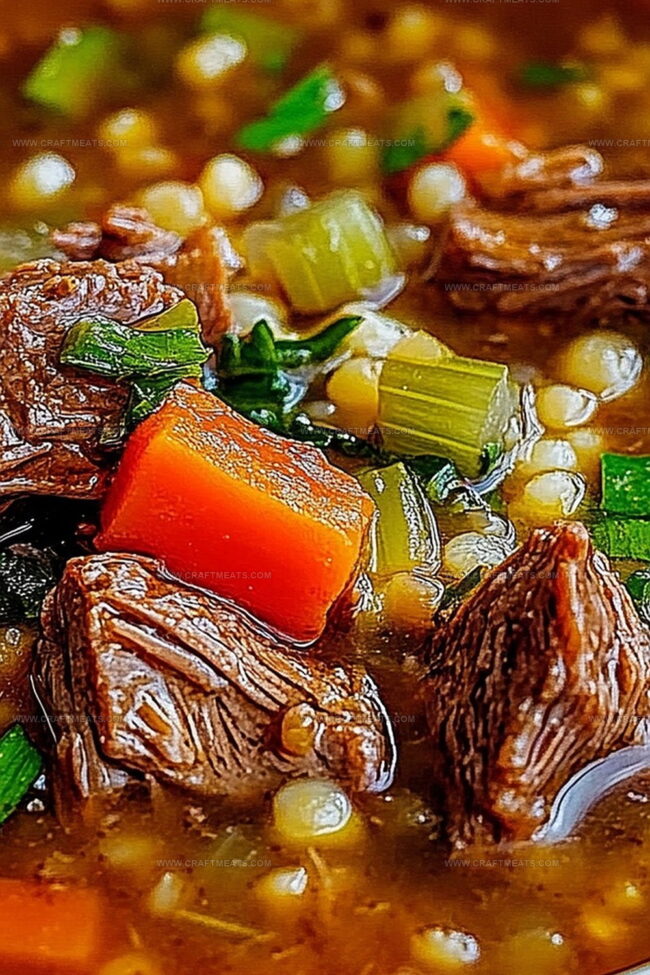 Rich, savory broth mingles with tender meat and plump barley kernels in a delightful harmony of flavors.