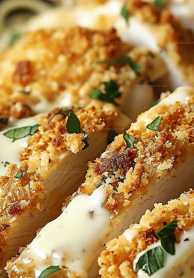 - Plate the crispy baked chicken atop the prepared pasta, generously drizzle with the creamy Alfredo sauce, and garnish with finely chopped fresh parsley for a burst of color and flavor.