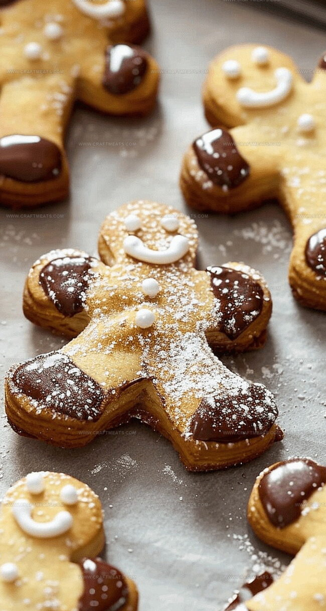 - Transfer pastry figures onto a parchment-lined baking sheet, positioning them with strategic spacing to accommodate natural expansion during heating.