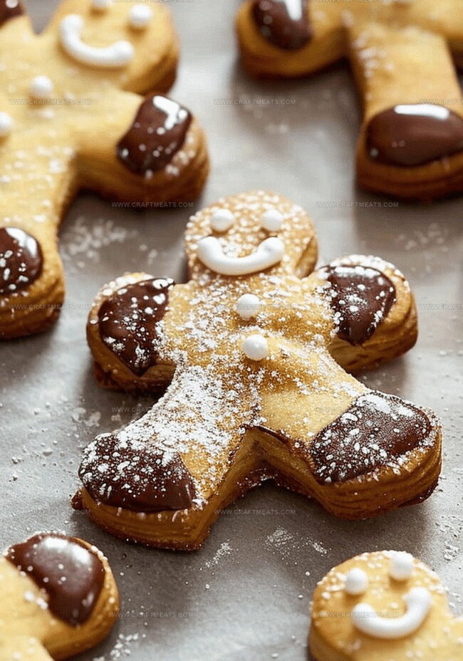 - Select a gingerbread man cutter and methodically press through the layered pastry, creating whimsical character-shaped cutouts with precise edges.