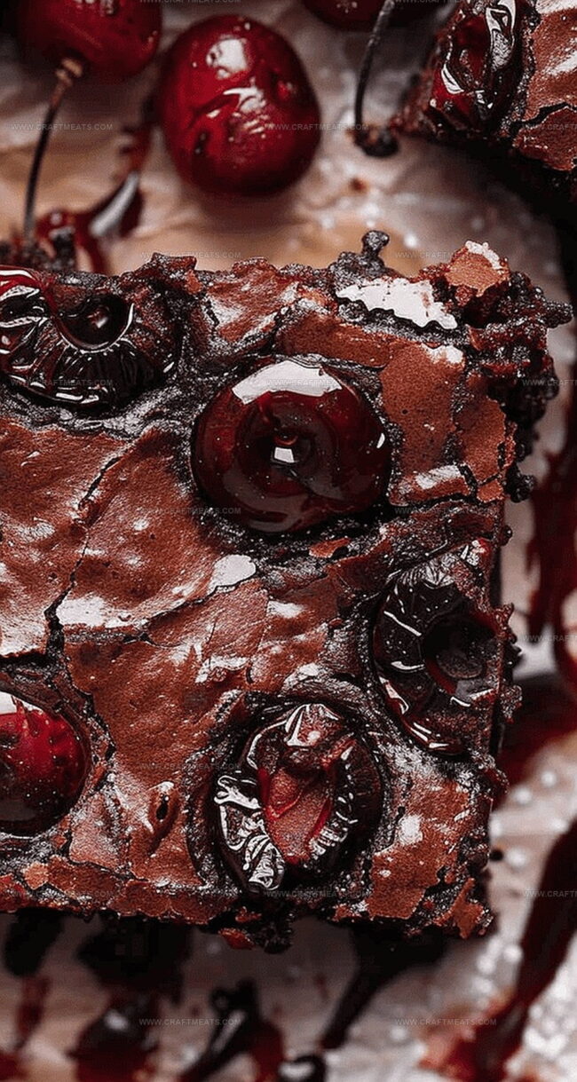 - Extract the brownies, garnish with remaining roasted cherries, slice, and serve these luxurious chocolate-cherry delights.