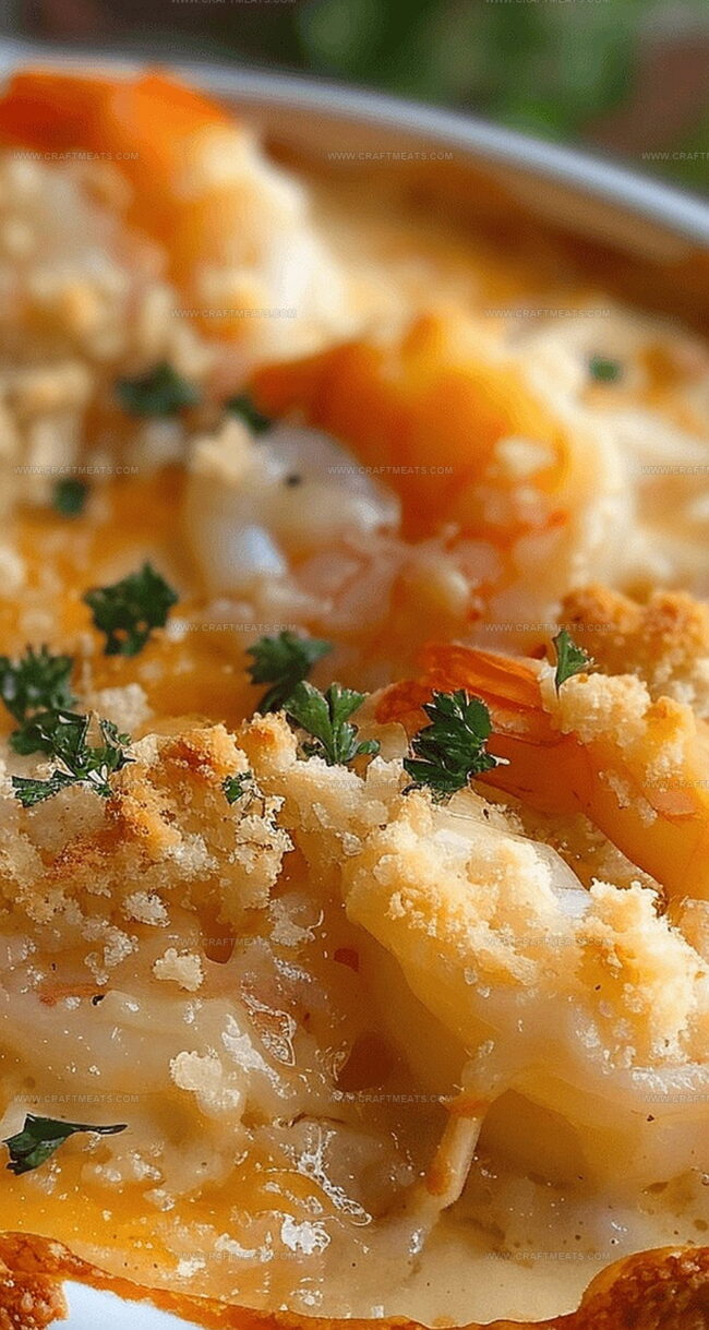 Crisp breadcrumb toppings promise a delightful textural contrast against tender, succulent seafood nestled beneath a velvety sauce.