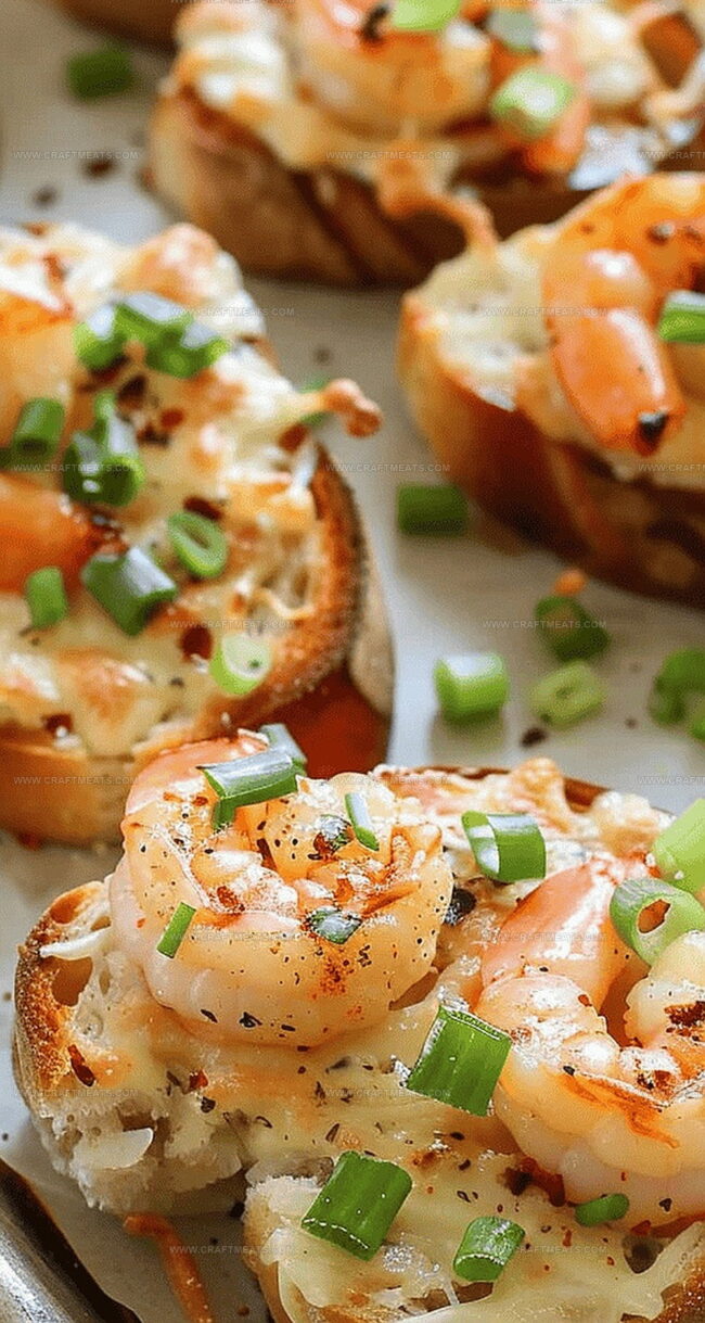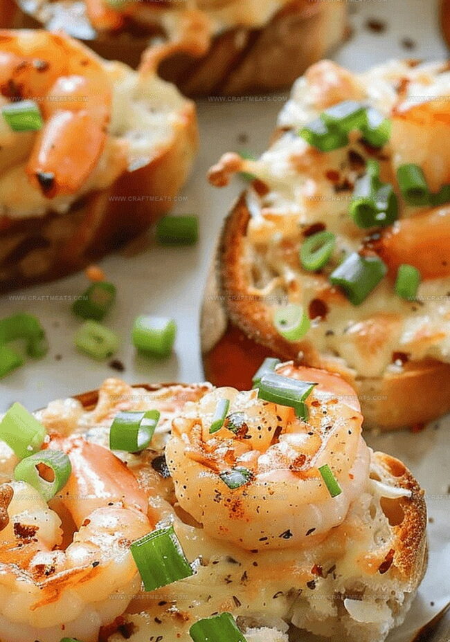 - Carefully spread the shrimp and cheese mixture across the toasted bread slices, ensuring even distribution.