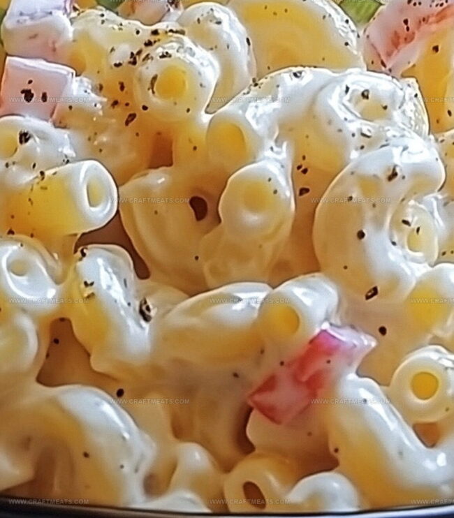 - Dressing Composition: Craft a luscious, tangy dressing by methodically combining mayonnaise, vinegar, sugar, mustard, and carefully chopped vegetables, whisking until achieving a smooth, harmonious blend that will envelop the pasta with vibrant, creamy flavors.