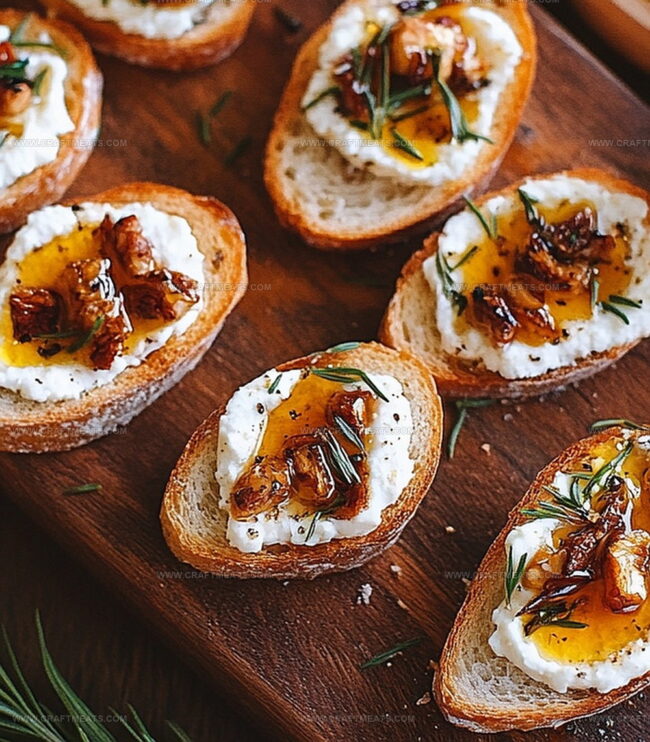 - Assembly and Garnishing: Generously spread whipped feta across toasted baguette slices, creating elegant peaks and swirls. Drizzle spicy honey in artistic zigzag patterns, then sprinkle fresh herbs and crushed nuts to introduce contrasting textures and aromatic complexity.