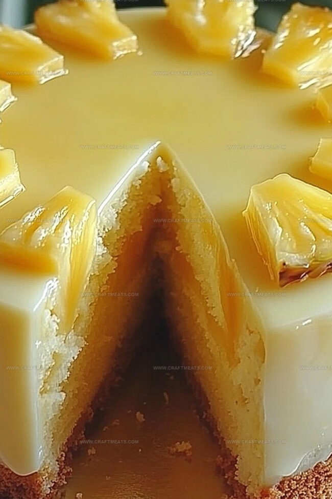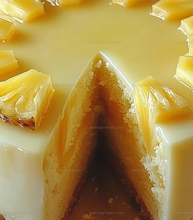 Ripe, golden pineapples mingle perfectly with tender cake layers, creating a mouthwatering dessert.