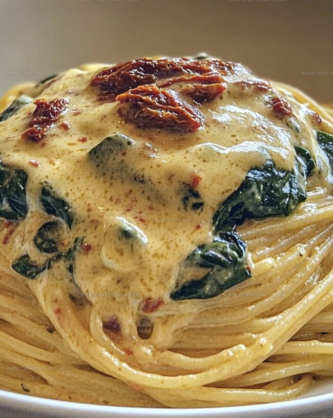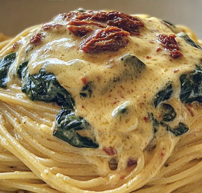 Vibrant Spaghetti & Spinach With Sun-Dried Tomato Cream Sauce Recipe