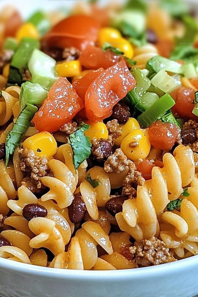 This crowd-pleasing taco pasta salad combines the best of Mexican and Italian cuisines in one delightful dish.